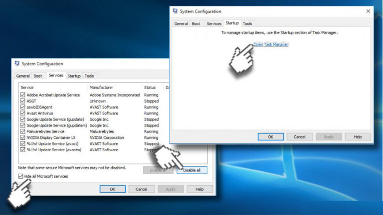 - Und öffnen Sie die Registerkarte Startup> wählen Sie die Option Task-Manager öffnen.