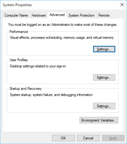 - Suchen Sie auf der Registerkarte Erweitert den Abschnitt Leistung und klicken Sie auf die Schaltfläche