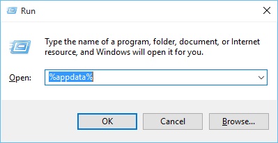 - Drücken Sie die Windows-Taste + R und geben Sie % appdata% in das Dialogfeld Ausführen ein. Nachdem Sie % appdata% eingegeben haben, drücken Sie die Eingabetaste oder klicken Sie auf OK, um AppData zu öffnen