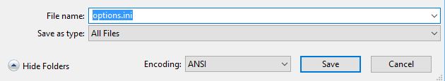 - Führen Sie die folgenden Schritte aus, um die Datei Options.ini zu erstellen: