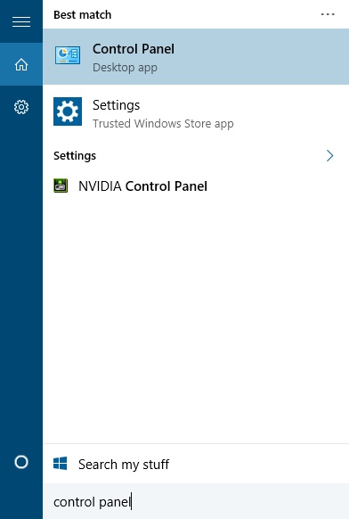 - Wählen Sie zunächst die Systemsteuerung aus der Ergebnisliste.