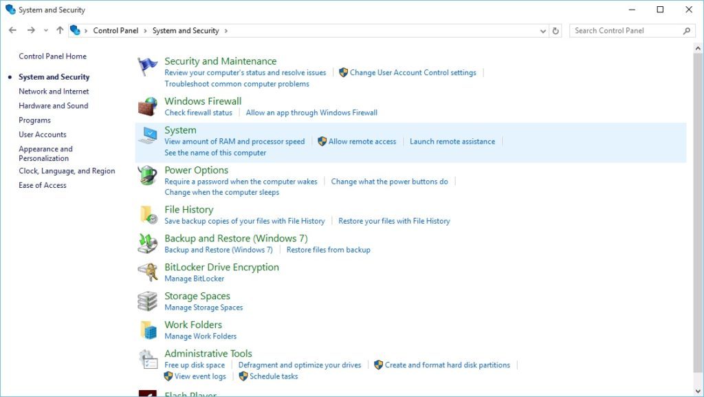 - Gehen Sie dann zu System und wählen Sie Sicherheit> System.