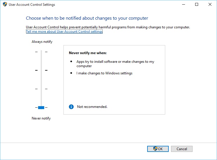 Sie können dieser Lösung auch für andere Software folgen. Wenn Sie festgestellt haben, dass Java problemlos auf Ihrem PC funktioniert, können Sie versuchen, die Benutzerkontensteuerung zu deaktivieren, um dieses Problem zu beheben. Sie können die Benutzerkontensteuerung deaktivieren, während Sie die gewünschte Anwendung ausführen, und dann wieder einschalten.