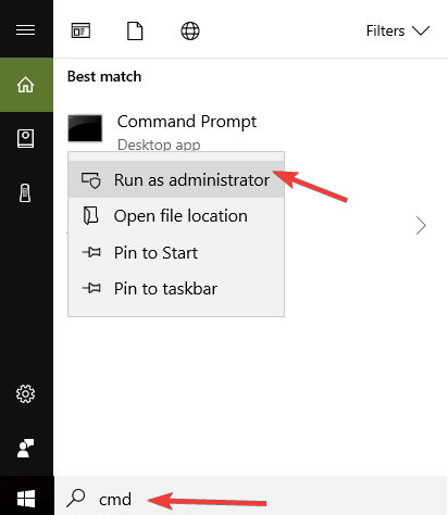 - Klicken Sie auf Start> geben Sie cmd> Öffnen Sie die Eingabeaufforderung (Admin).
