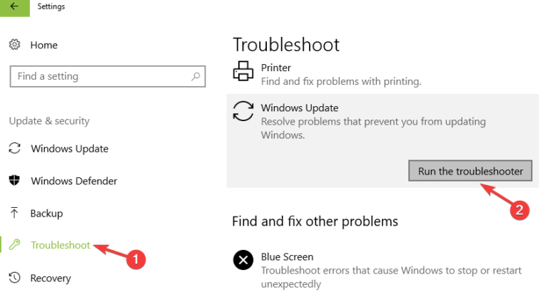 - Klicken Sie nun auf Problembehandlung> und führen Sie die Windows Update-Problembehandlung