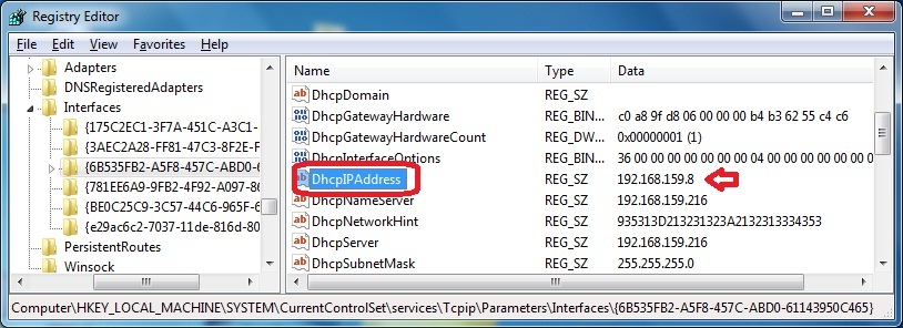 - SYSTEM \ CurrentControlSet \ services \ Tcpip \ Parameters \ Interfaces