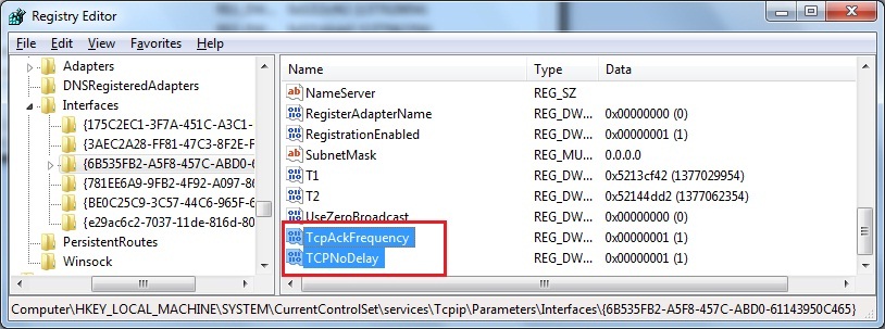 - Benennen Sie diese Werte als ‘TcpAckFrequency’ um (Pakete sofort senden)