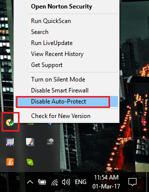 - Klicken Sie zuerst mit der rechten Maustaste auf das auf Ihrem System installierte Antivirenprogramm. Wählen Sie Deaktivieren