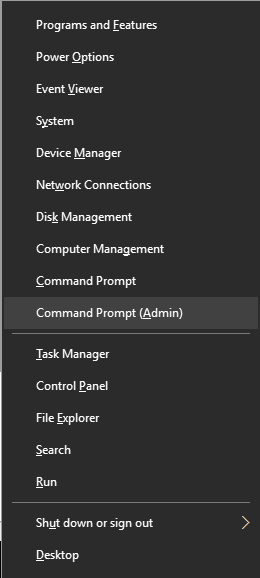 - Drücken Sie die Windows-Taste + X> und wählen Sie im Menü die Option Eingabeaufforderung (Admin).