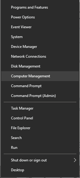 - Drücken Sie Win + X-Menü> und wählen Sie im Menü> Computerverwaltung.