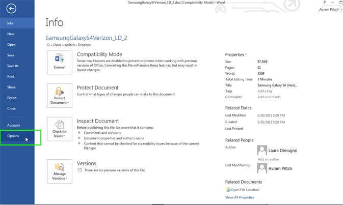 - Gehen Sie zu Datei> Optionen.