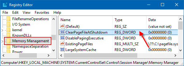 HKEY_LOCAL_MACHINE\SYSTEM\CurrentControlSet\Control\Session Manager\Memory Management