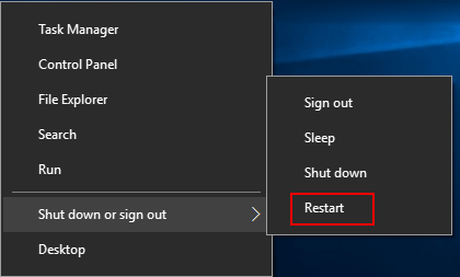 - Starten Sie das System neu> drücken Sie (Win + X, U, U), damit die Änderungen wirksam werden.