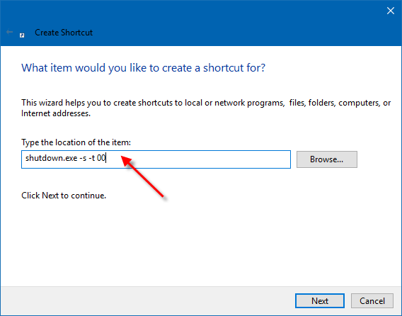 Dann gibt es einen anderen Trick, der Windows 10 schnell herunterfahren lässt> einfach eine Shutdown-Verknüpfung erstellen> dies beendet sofort das System.