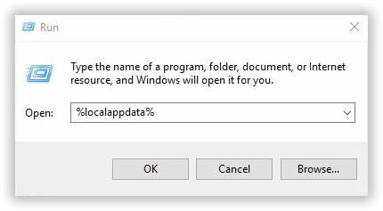 - Drücken Sie Windows + R Key> geben Sie% localappdata% ein> drücken Sie die Eingabetaste